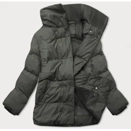 Krátká zimní bunda v army barvě s vysokým stojáčkem (5m729-136)