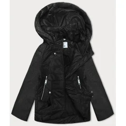 Černá melanžová krátká dámská volná bunda s melanžovými rukávy Vaston (F-23962#)