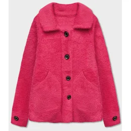 Krátký růžový přehoz přes oblečení typu alpaka na knoflíky (537)
