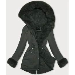 Krátká zimní bunda parka v army barvě s kožešinovou podšívkou (16M9062-136)