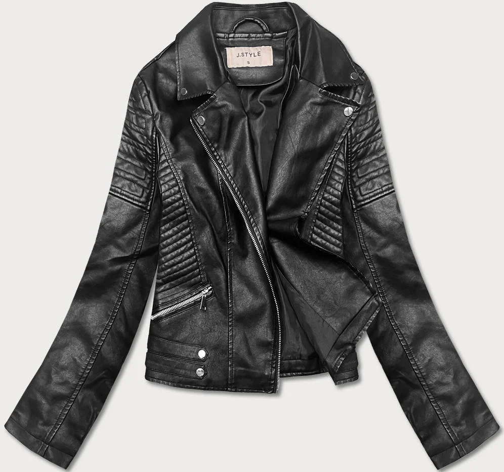 Krátká černá bunda ramoneska s límcem (11Z8031)