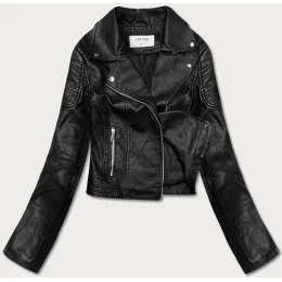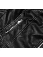 Krátká černá bunda ramoneska z ekologické kůže (11Z8028)