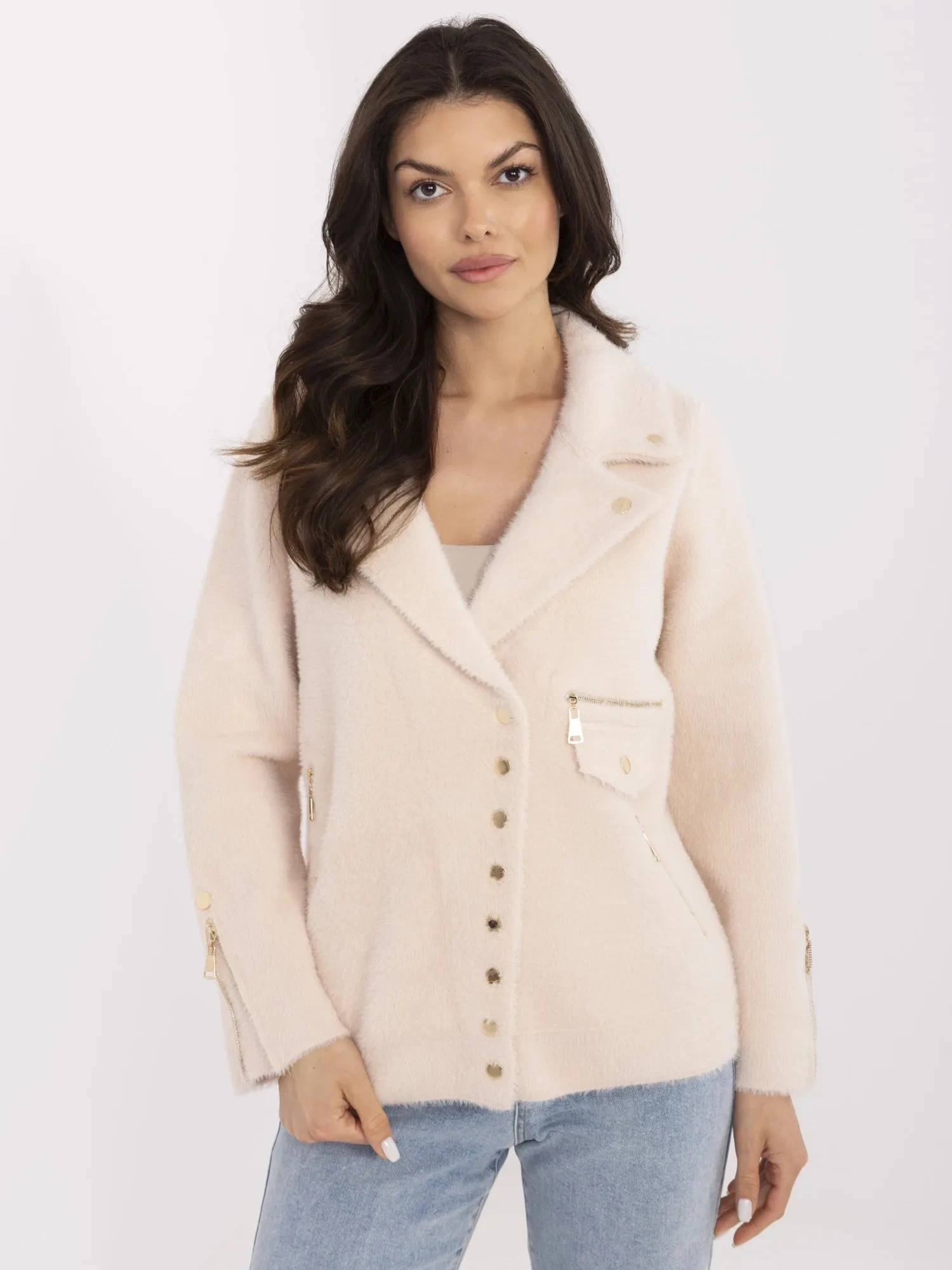 Světle béžová krátká vlněná bunda typu alpaka (250)