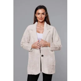 Krátký béžový vlněný přehoz přes oblečení typu alpaka (7108-1)