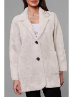 Přehoz je měkký a příjemný na dotyk, má dvě kapsy a zapíná se knoflíky. Model má délku do poloviny stehen.