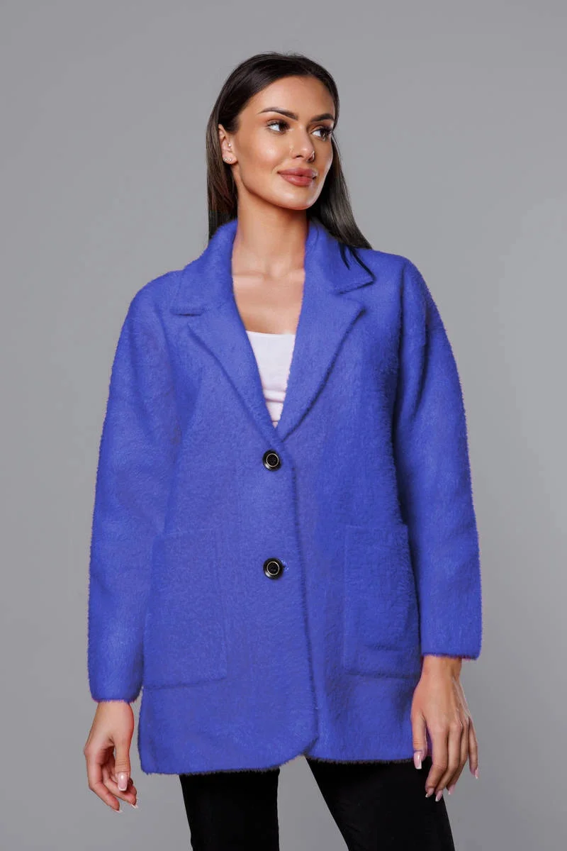 Krátký vlněný přehoz přes oblečení typu alpaka v chrpové barvě (7108-1)