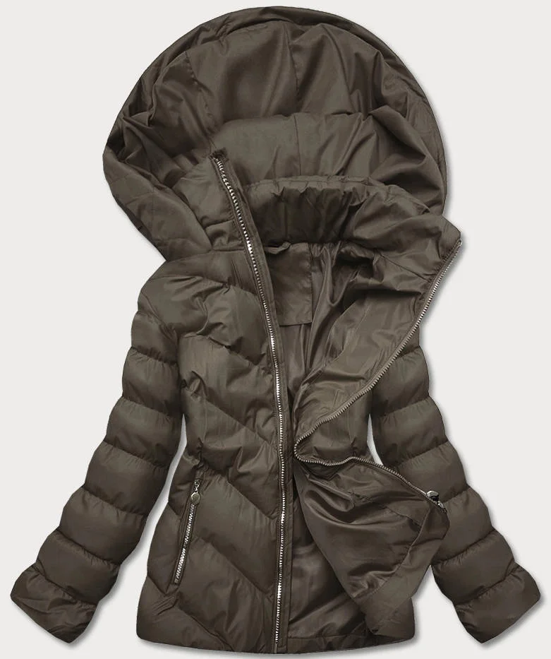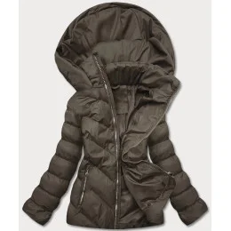 Krátká dámská zimní bunda v army barvě (5m725-136)