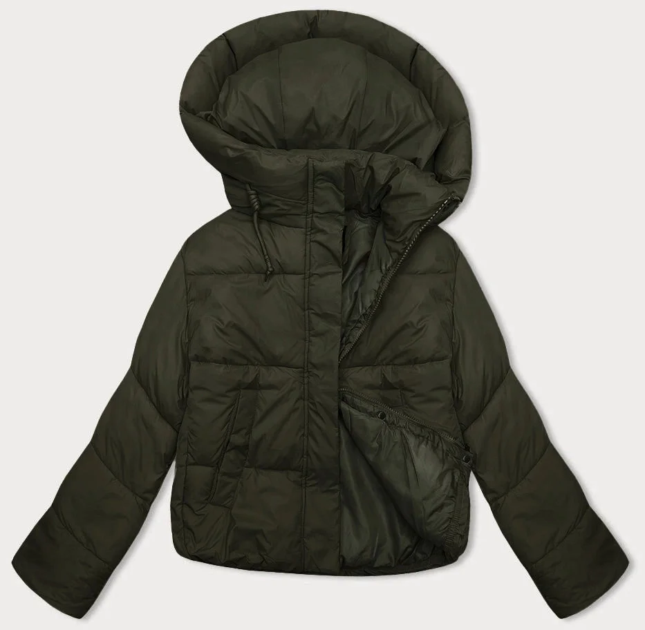 Krátká dámská zimní péřová bunda v army barvě J Style (16M9188-136)