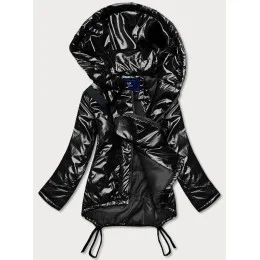 Černá krátká dámská zimní bunda s ledvinkou (omdl-018)