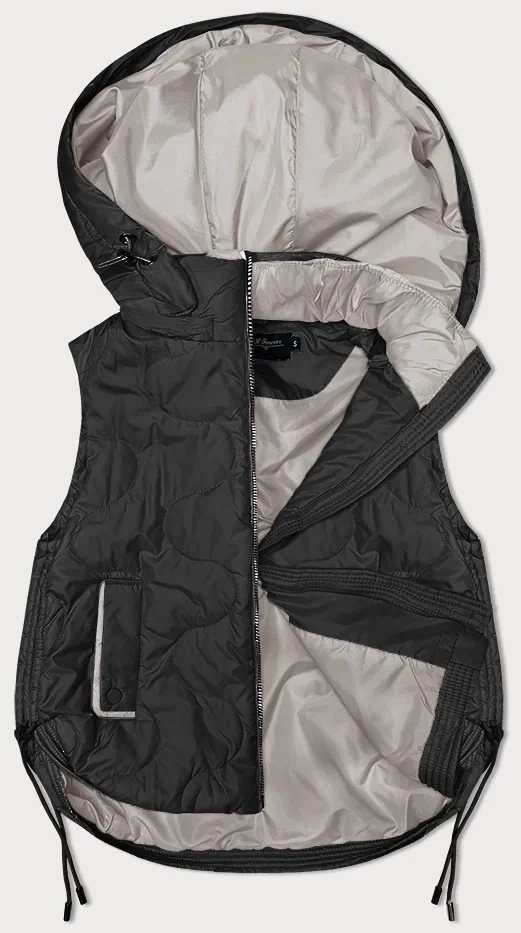 Krátká černá dámská vesta s odepínací kapucí BH Forever (BH-2414)