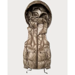 Krótki bezrękawnik damski z odpinanym kapturem Goodlookin beżowy (B8258-12)