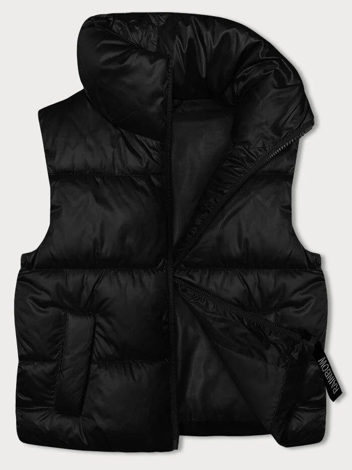 Krátká černá dámská vesta se stojáčkem (B8245-1)