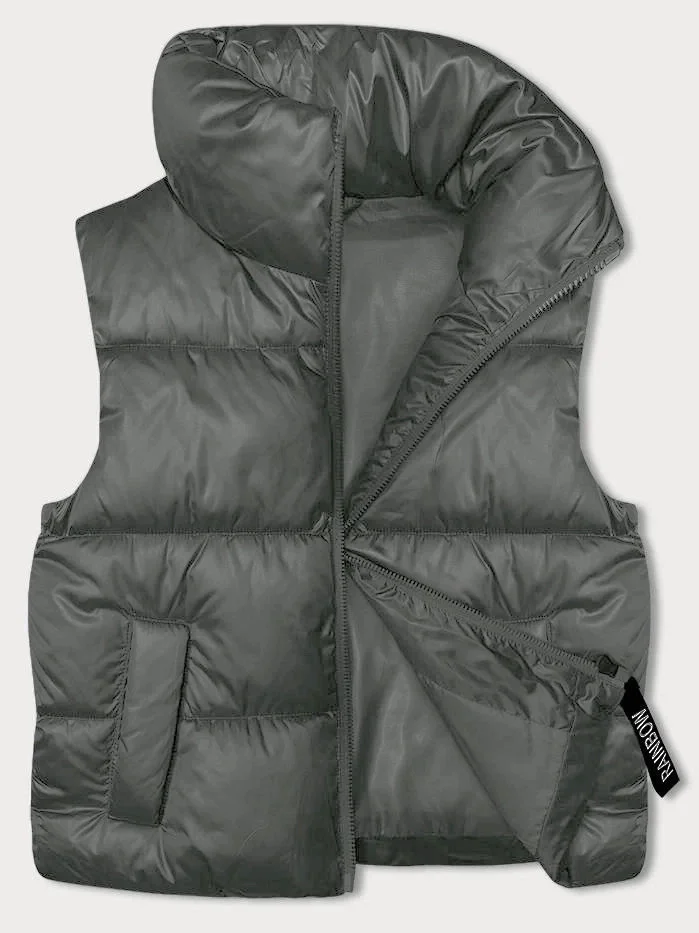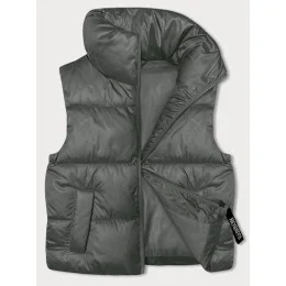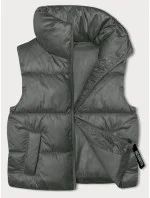 Šedozelená krátká dámská vesta se stojáčkem (B8245-70)
