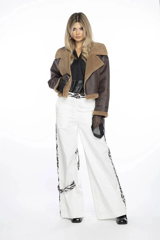 Kožich má uvnitř kožešinovou podšívku, má dvě kapsy bez zapínání a zapíná se zipem. Model má délku do pasu.