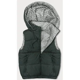 Krátká péřová dámská vesta v army barvě s kapucí (16M9091-136)