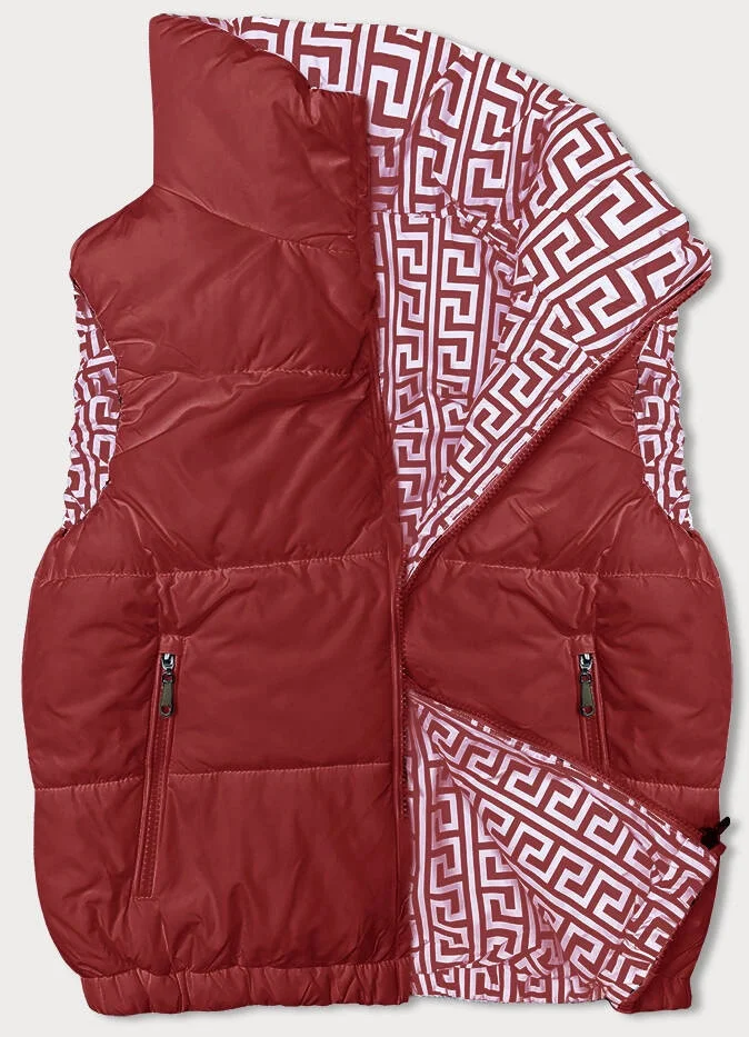 Krátká červená dámská péřová vesta se stojáčkem (16M9092-270)