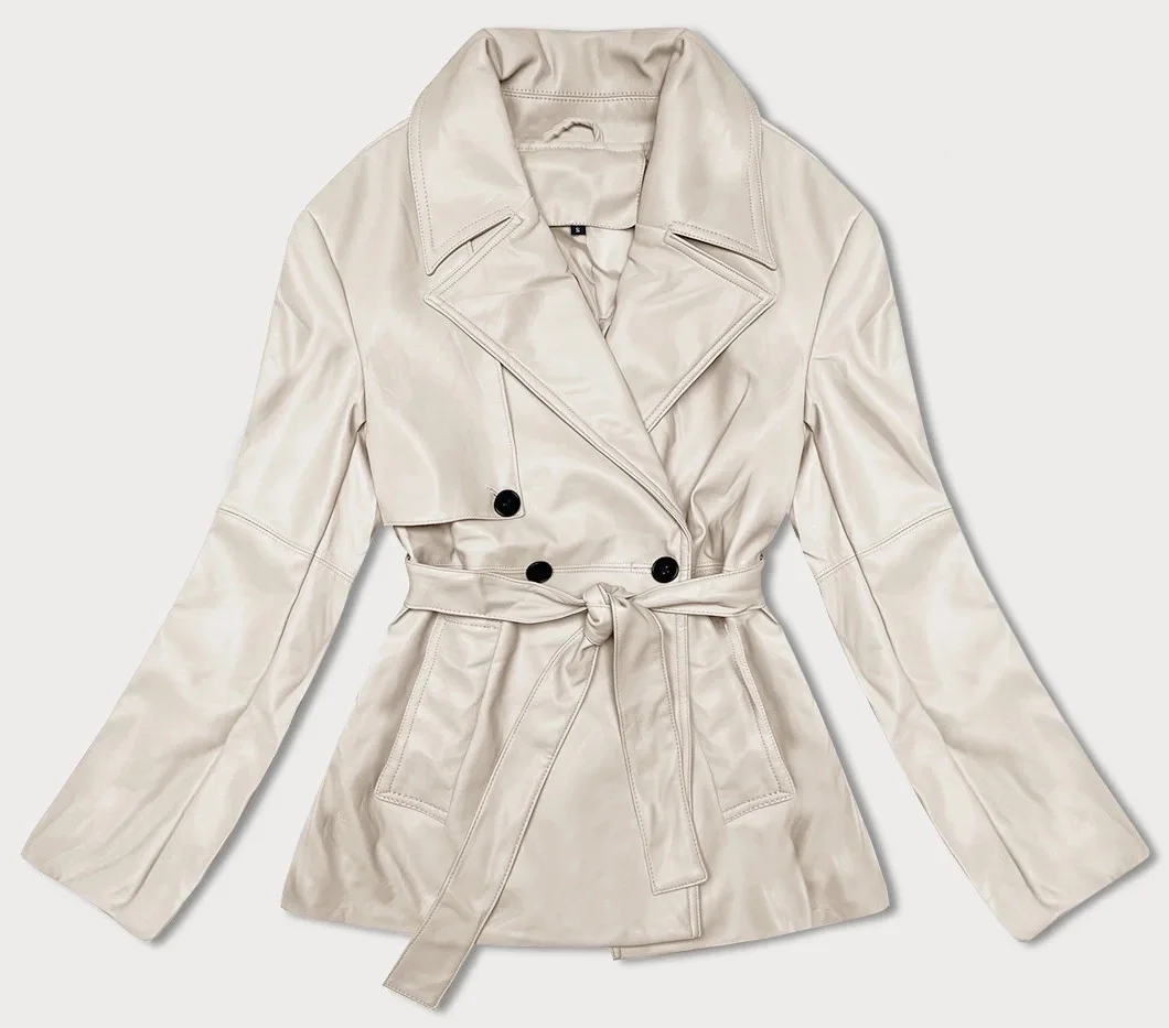 Krátký trenčkot z ekologické kůže J Style ve studené béžové barvě (11Z8102)