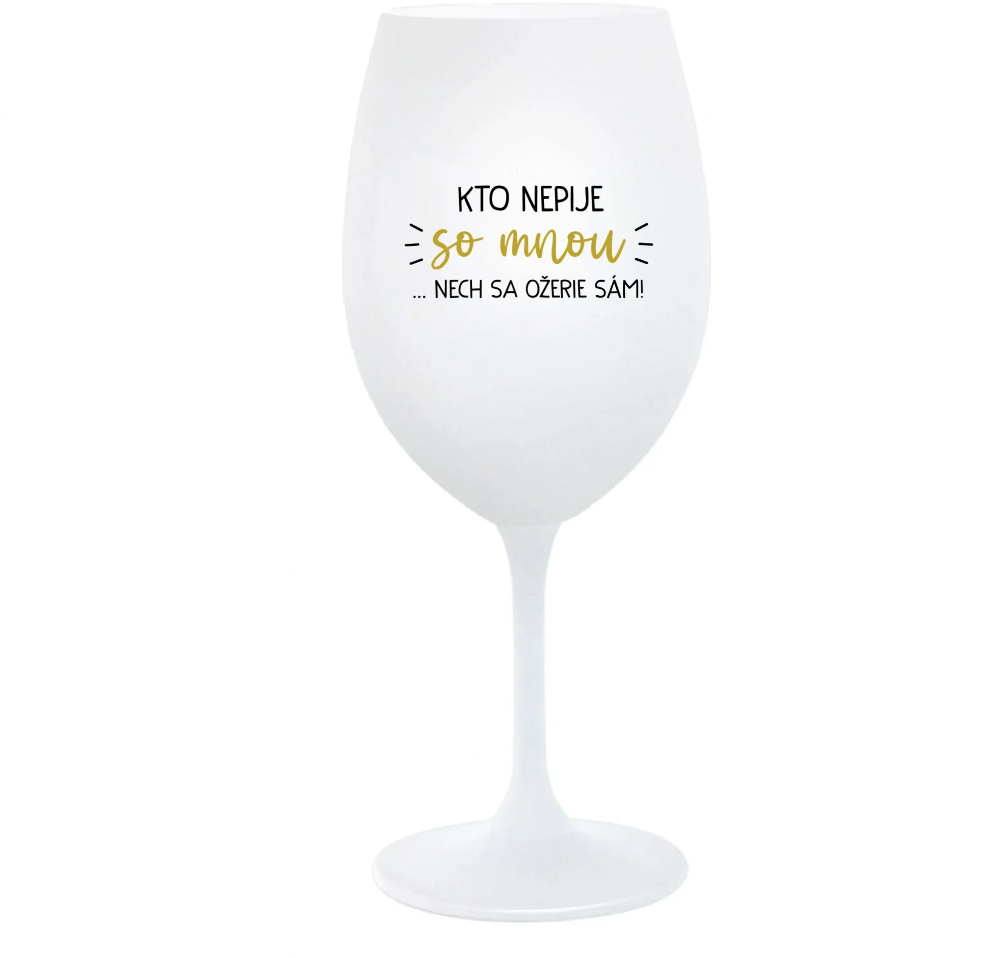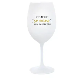 KTO NEPIJE SO MNOU...NECH SA OŽERIE SÁM! - biely pohár na víno 350 ml
