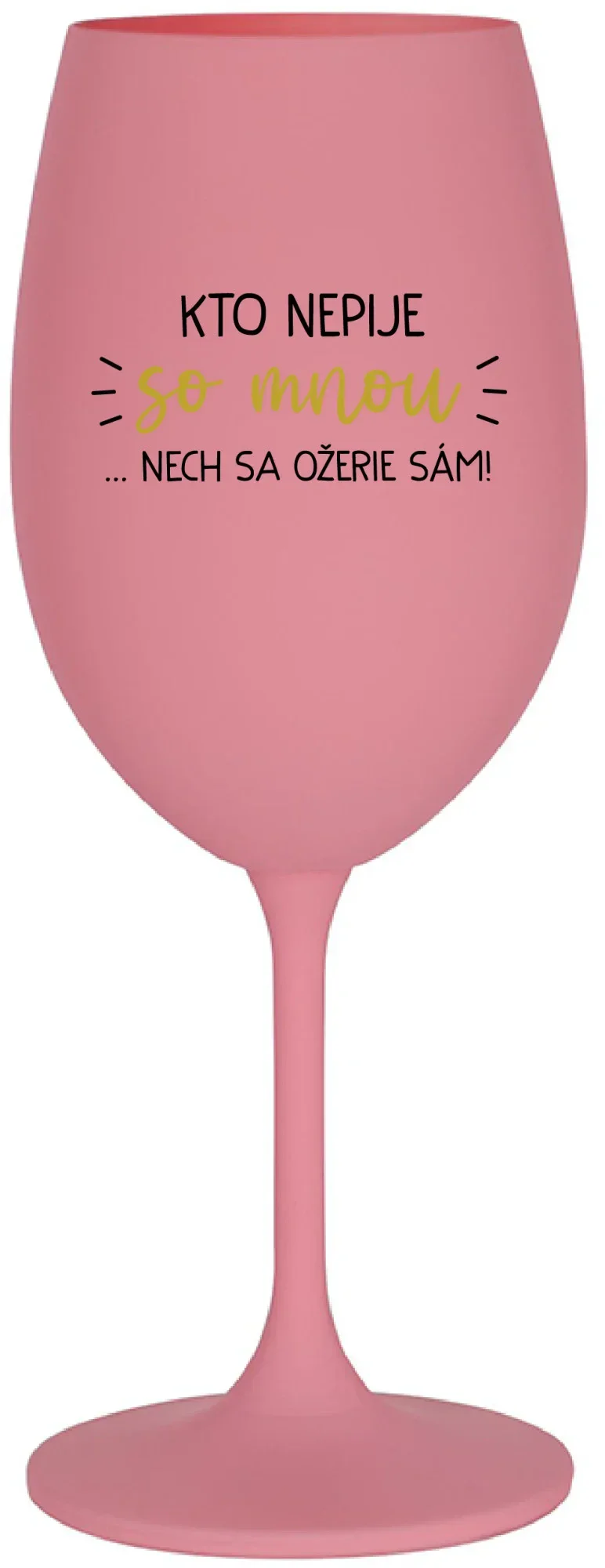KTO NEPIJE SO MNOU...NECH SA OŽERIE SÁM! - ružový pohár na víno 350 ml
