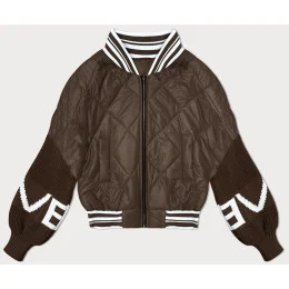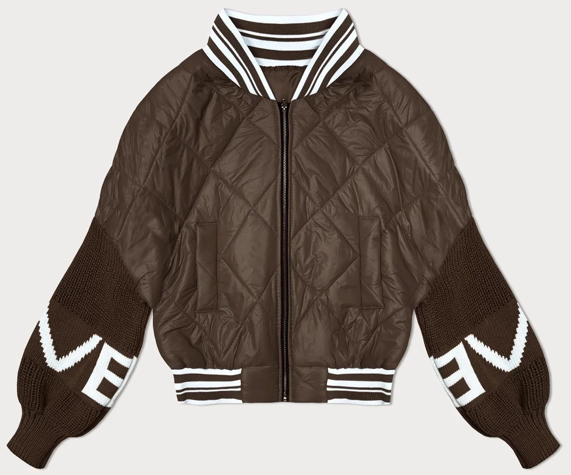 Hnědá dámská bunda typu "bomber" se svetrovými rukávy (2439)