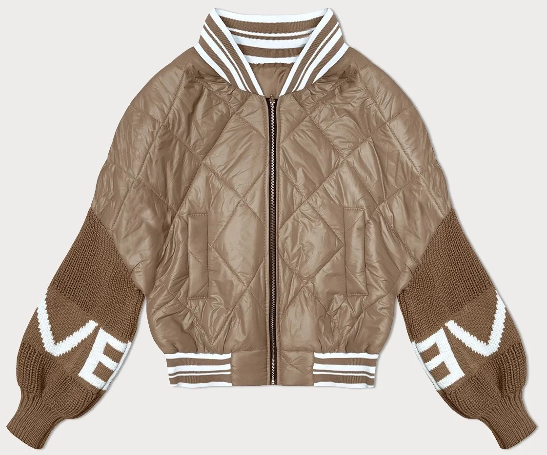 Tmavě béžová dámská bunda typu "bomber" se svetrovými rukávy (2439)