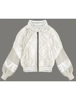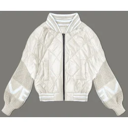 Světle béžová dámská bunda typu "bomber" se svetrovými rukávy (2439)