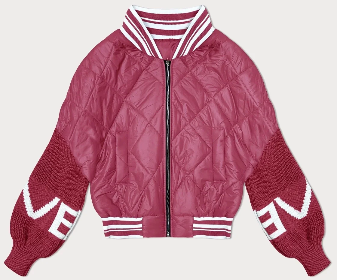 Růžová dámská bunda typu "bomber" se svetrovými rukávy (2439)
