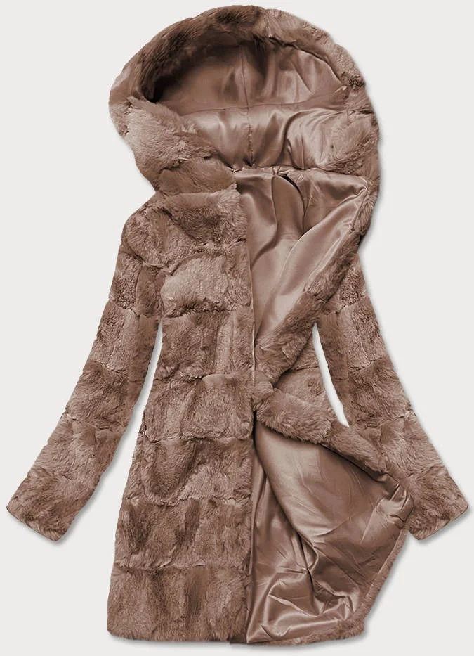 Hnědá dámská bunda-kožíšek s kapucí (br9741-12)