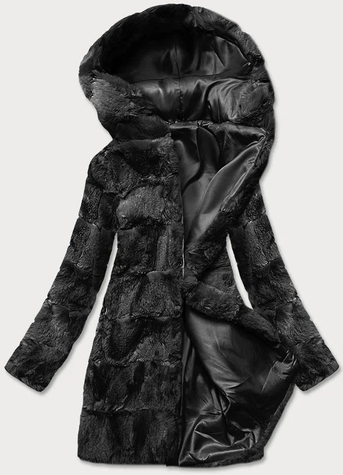 Černá dámská bunda-kožíšek s kapucí (br9741-1)