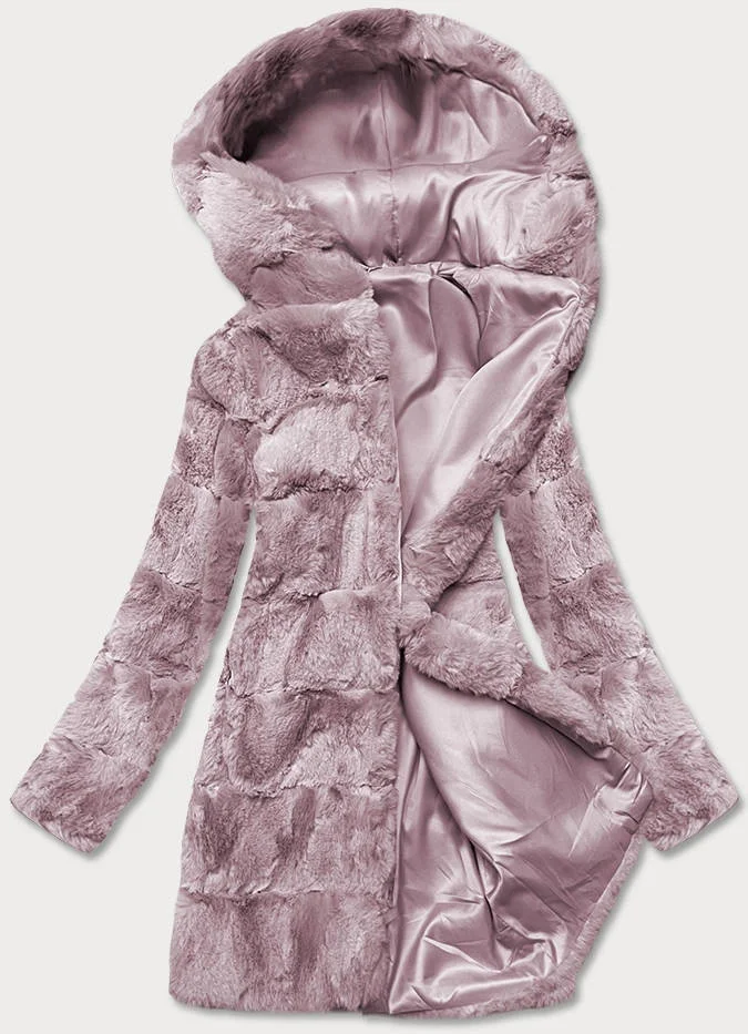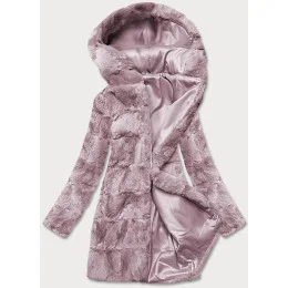 Pudrově růžová dámská bunda-kožíšek s kapucí (br9741-81)