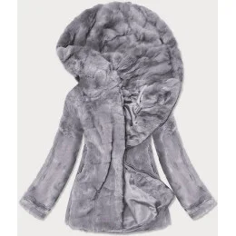 Šedá dámská bunda-kožíšek s kapucí (br9742-9)