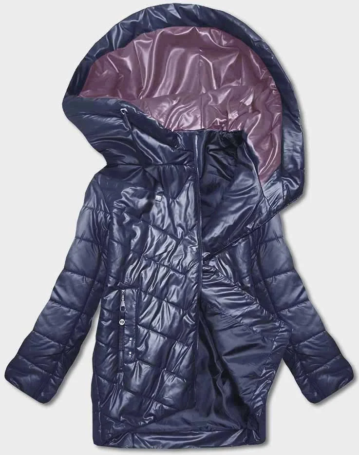 Tmavě modrá dámská bunda s asymetrickým zipem (B8087-72051)
