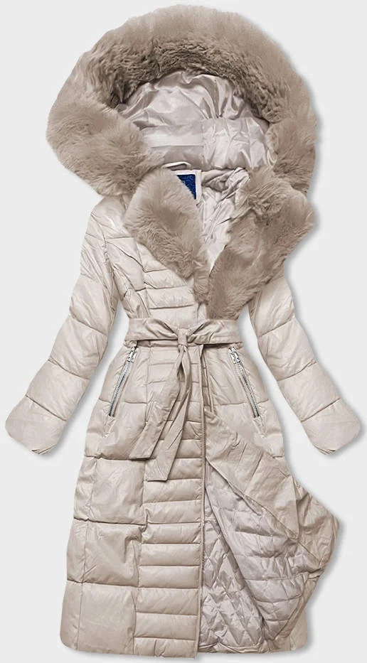 Béžová dámská bunda s kožešinovým límcem (AG6-28)