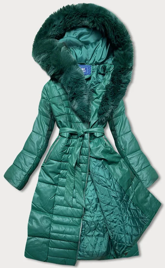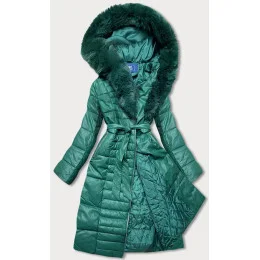 Zelená dámská bunda s kožešinovým límcem (ag6-28)