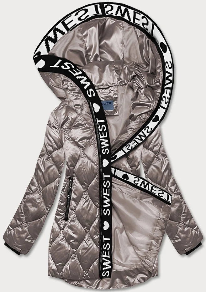 Béžová dámská bunda s ozdobnou lemovkou (B8113-12)