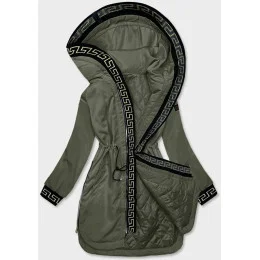 Dámská bunda v khaki barvě s ozdobnou lemovkou (B8139-11)