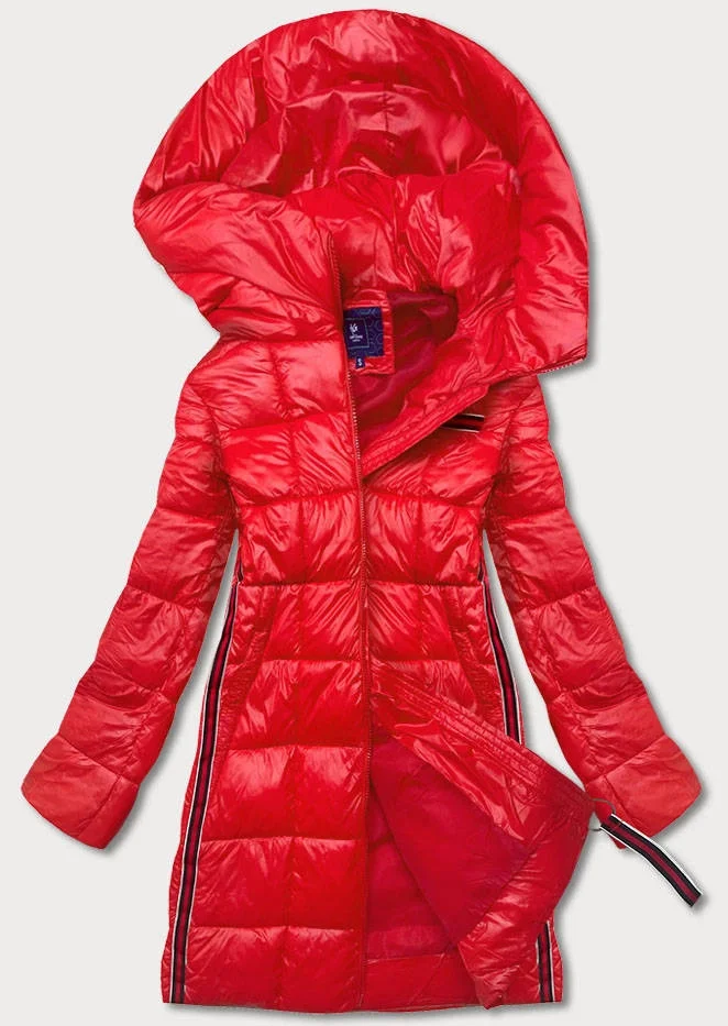 Červená dámská bunda s ozdobnými lampasy (AG1-J9002)