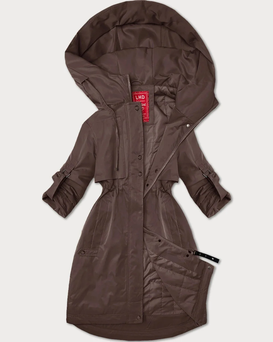 Hnědá dámská bunda s ohrnutými rukávy LHD (LHD-24591)
