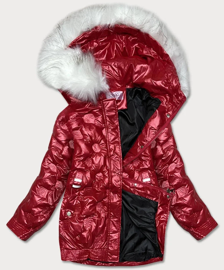 Červená dámská bunda s reliéfními vytlačovanými vzory (8261)