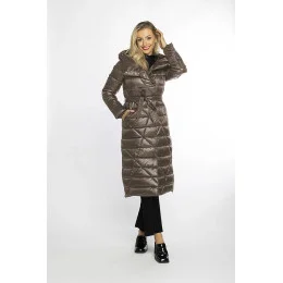 Bunda je lehce vypasovaná, je zateplená vrstvou syntetické péřové výplně, má dvě kapsy a zapíná se šikmým zipem. Model má kapuci, kterou není možné odepnout. Bunda má délku ke kolenům.