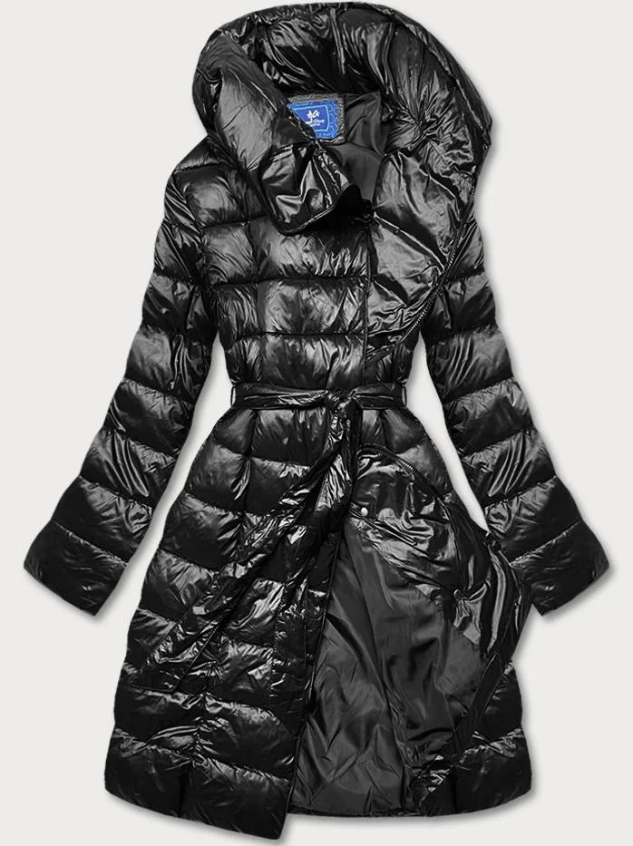Černá dámská bunda s vyhrnutým límcem (ag1-j9061b)