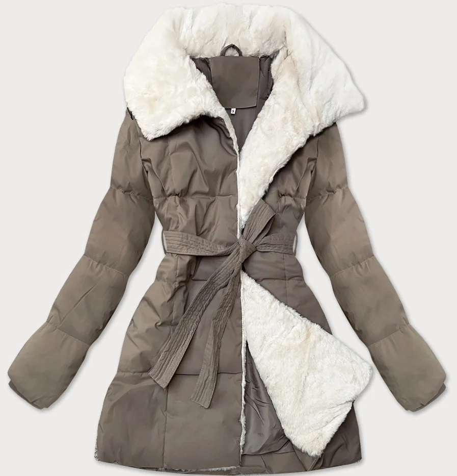 Béžová dámská bunda obšitá kožešinou, se stojáčkem J Style (16M9165-84)