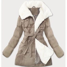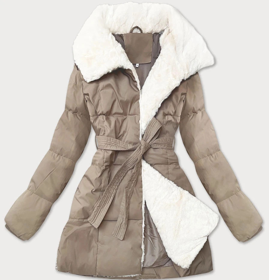 Světle béžová dámská bunda obšitá kožešinou se stojáčkem J Style (16M9165-62)