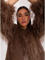 Bunda má podšívku, kulatý výstřih, dvě kapsy a zapíná se háčky. Kožešina má dlouhý vlas. Model má délku k bokům.
