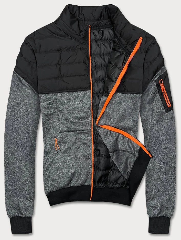 Černo-grafitová pánská bunda s neonovými zipy (8M907-392)