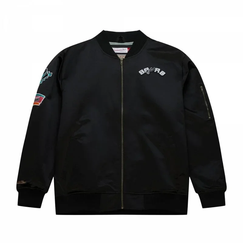 Mitchell & Ness Lightweight Satin Bomber San Antonio Spurs jacket M SJKT6599-SASYYPPPBLCK pánské