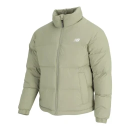 - Dámská bunda s vysokým límcem a malým logem New Balance na hrudi.