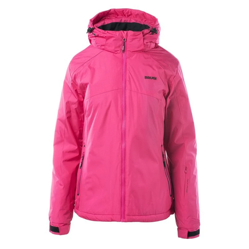 Dámská lyžařská bunda 2ALI značky Brugi má membránu s voděodolností 1500 mm H2O a prodyšností 1500 g/m²/24h. Vysoký límec a odepínací, nastavitelná kapuce vás ochrání před poryvy větru a lehkým deštěm. Bunda 2ALI má sněhový pás, který chrání před pronikáním sněhu. Kapsa na skipas umístěná na rukávu usnadní rychlé používání vleku. Navíc má prezentovaný model vnitřní kapsu a dvě vnější boční kapsy. Syntetická výplň zajistí odpovídající tepelný komfort během jízdy.