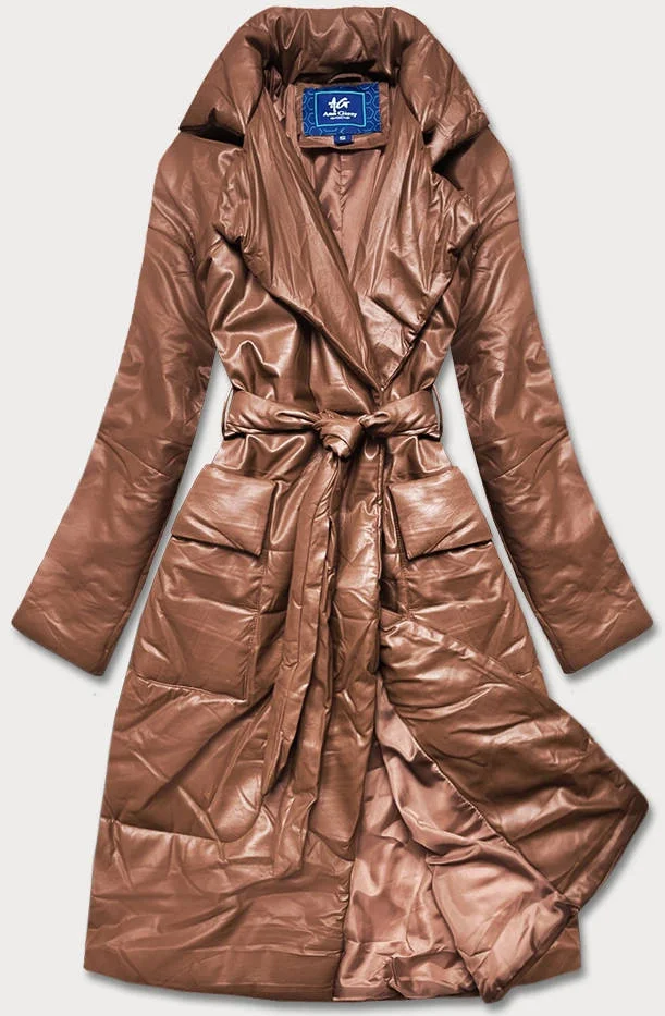 Hnědá oversize bunda z ekologické kůže (AG1-J9080)