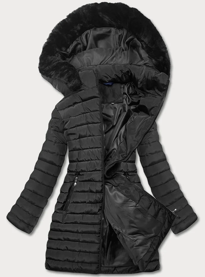 Černá prošívaná bunda s kapucí (l22-9865-1)